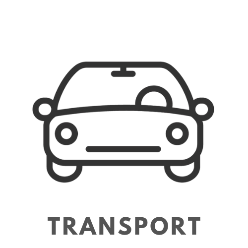 By train, road, or nearby airport.